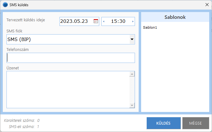Egyedi SMS: A felugró ablakot értelemszerűen kitöltve küldhetünk SMS-t egy telefonszámra.