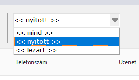Státuszok szűrése: Lehetőség van megjeleníteni csak a nyitott, zárt tételeket, illetve beállítható, hogy minden SMS megjelenjen, státusztól függetlenül.