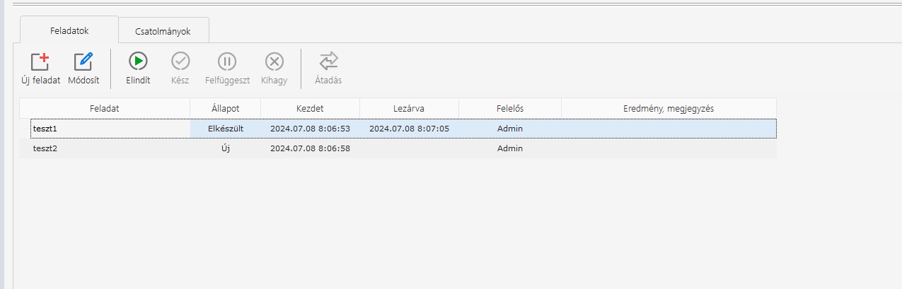 - Ügyekhez tartozó alfeladatok és csatolmányok