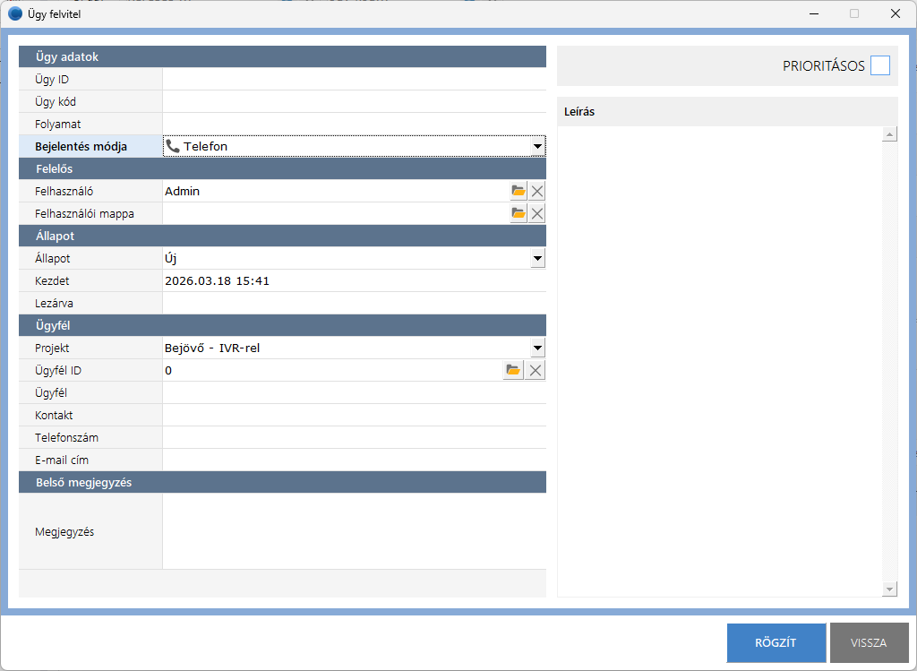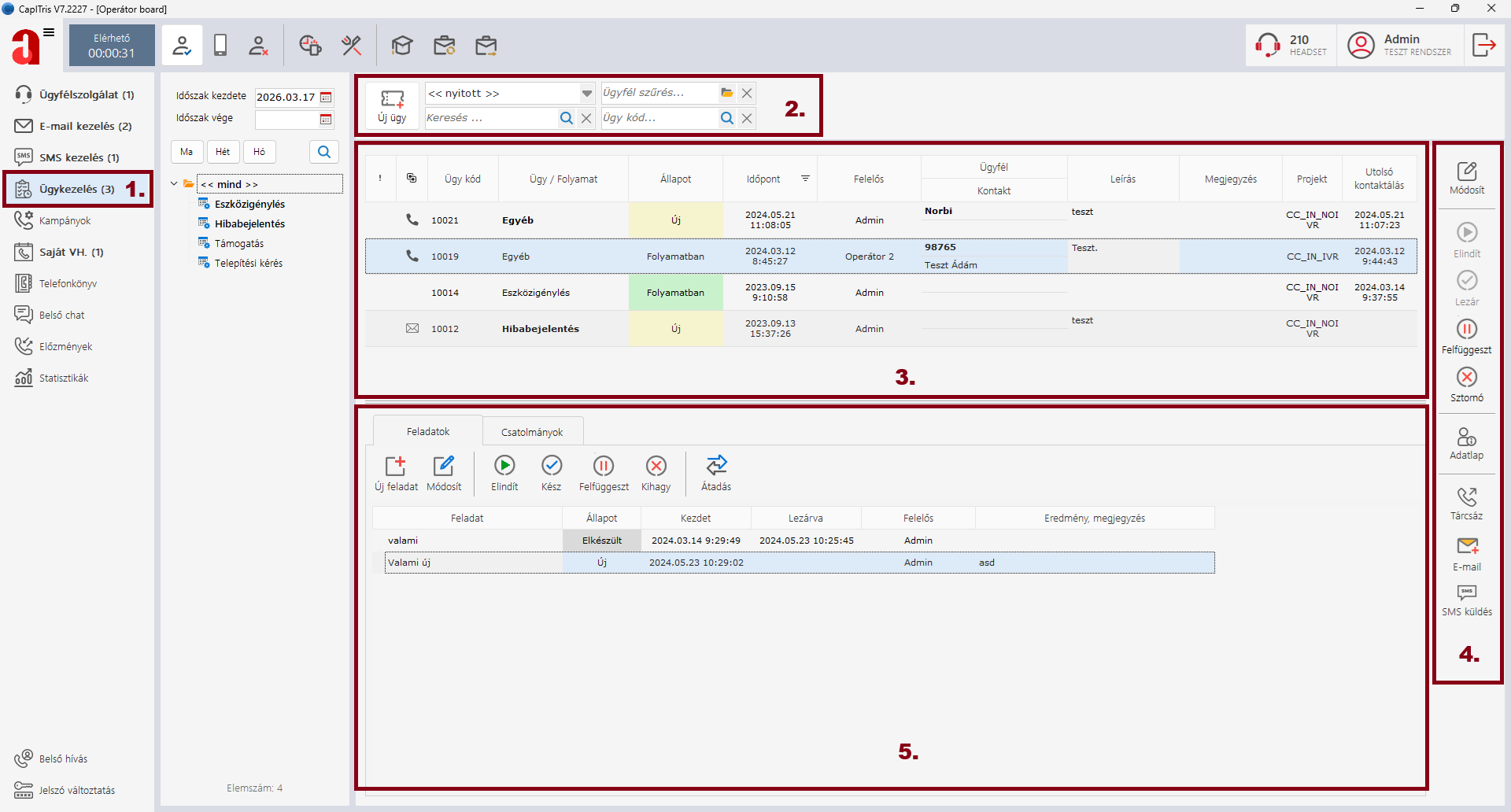 - Ügykezelés menüpont