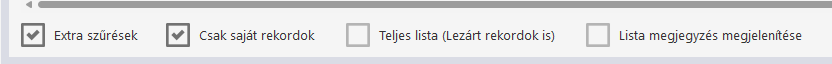 - Csak saját rekordok: Az adott projekten és listán belül a felhasználó saját rekordjait jeleníti meg