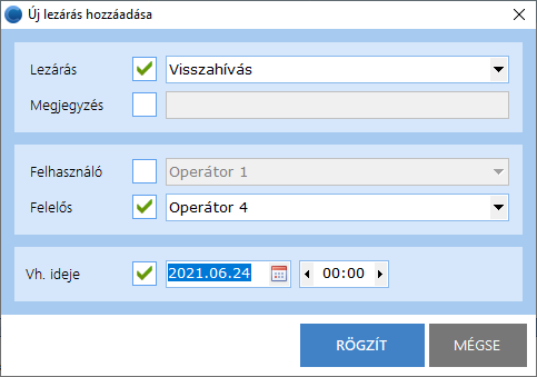 | Felhasználó | Beírja az adott rekordhoz a kiválasztott felhasználót. |