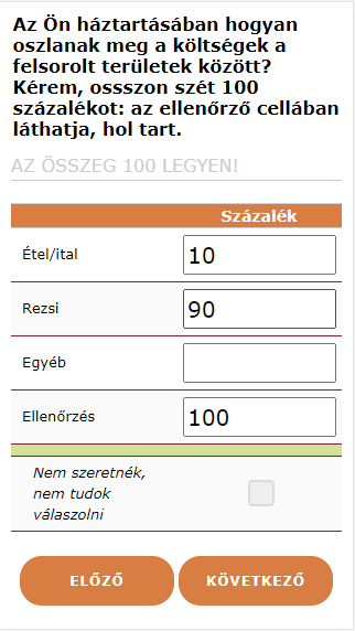 Százalékokat bekérő kérdés, ellenőrzéssel, mobilnézet
