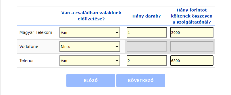 Táblázatos kérdés